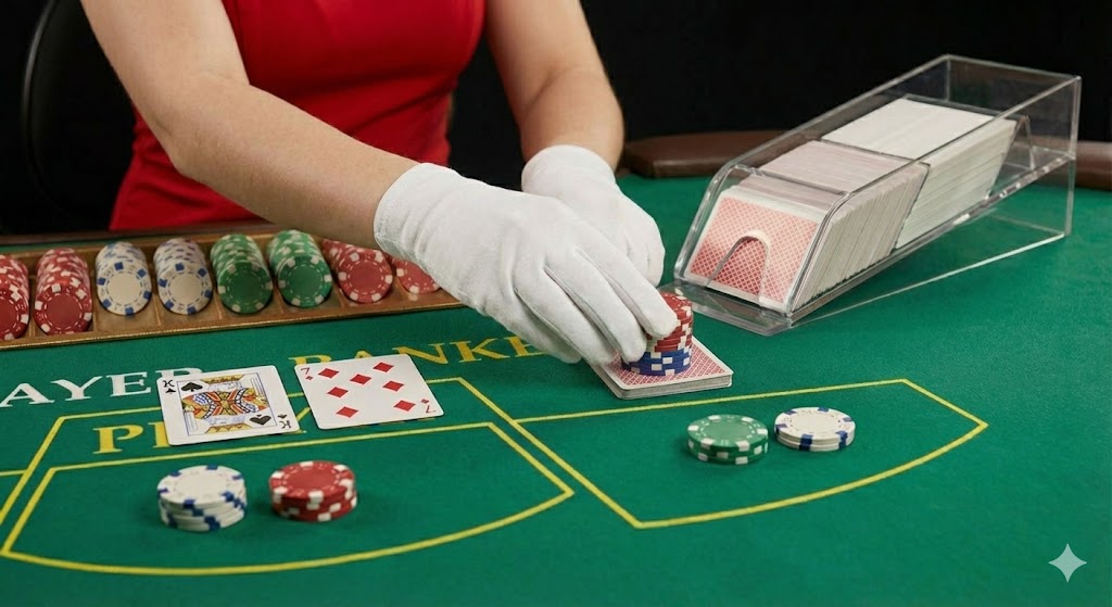 Card values are easy to understand — face cards count as zero, Aces count as one, and totals are calculated using the last digit only.